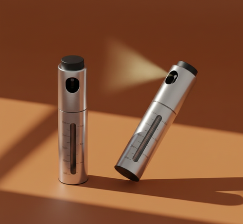 The simple stainless steel design is cool. The spray is fine enough that you don't need to use too much! I would like to purchase more as it can also be used on bread dough when making bread.